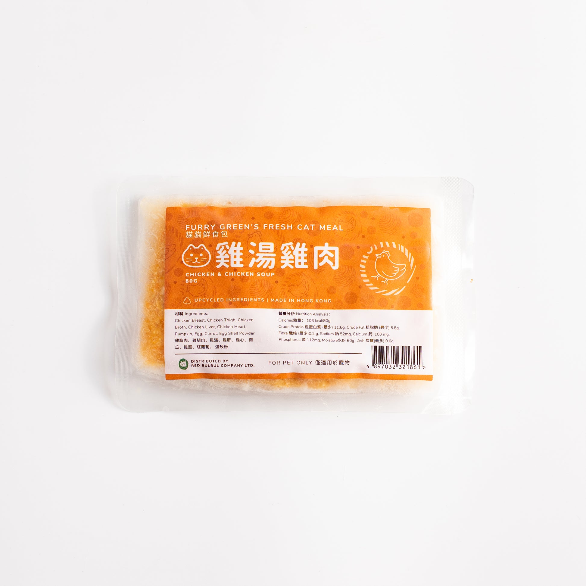 Fresh cat food made with chicken, pumpkin, and other natural ingredients! Guaranteed free of additives and preservatives.