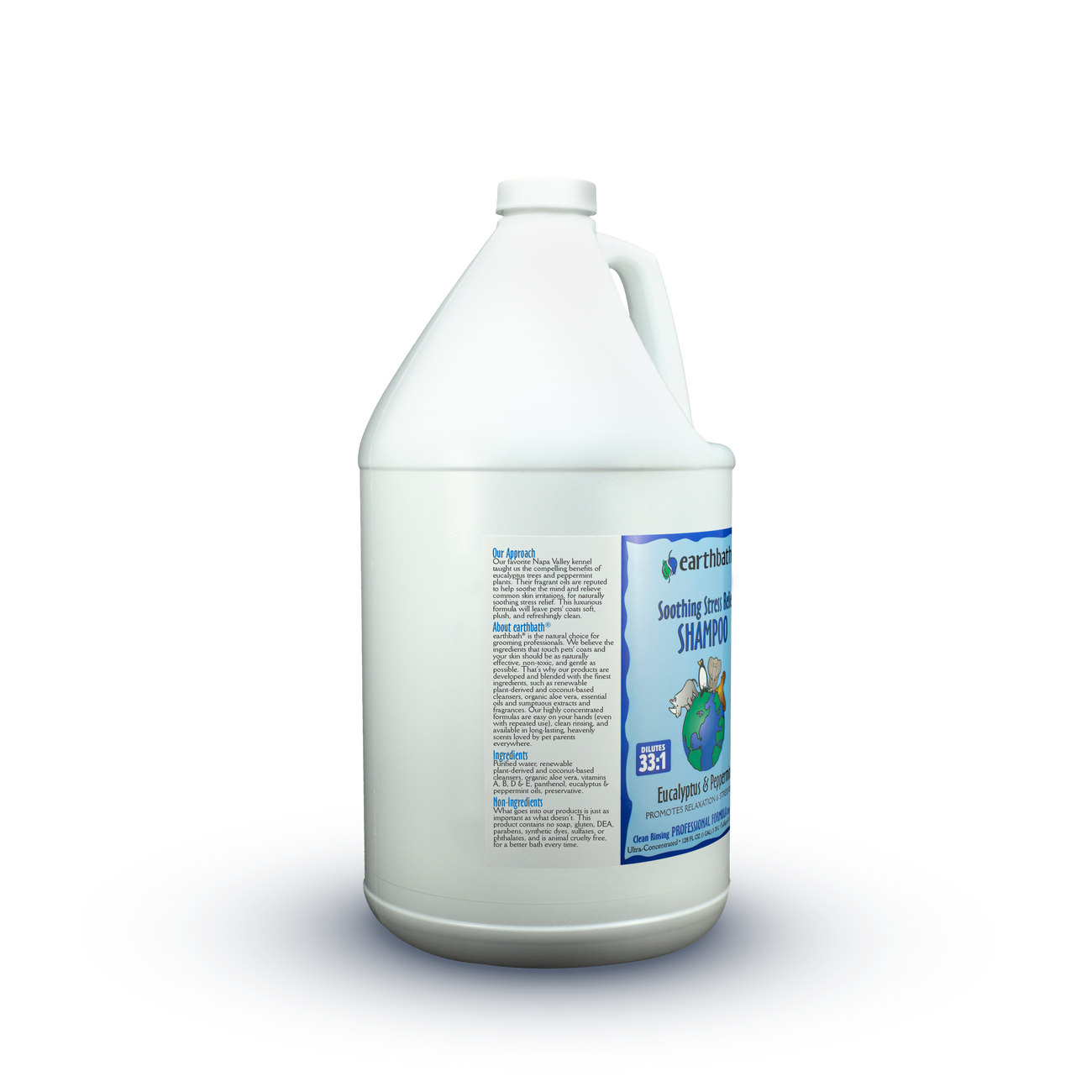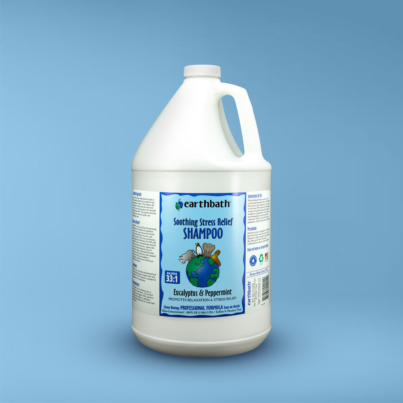 Shake well before using. On a wet coat, lather your pet thoroughly with a few good palm-fulls of earthbath® shampoo. Remember to eliminate all escape routes in advance (a tip: once your pet is slippery wet, he or she is suddenly smarter and faster than you are). Work lather from head to tail and keep out of eyes. Leave on for at least 90 seconds and breathe deeply along with your pet to enjoy the soothing botanical fragrances of eucalyptus and peppermint. Ommmm.... May be diluted ten parts water to one part shampoo if desired.